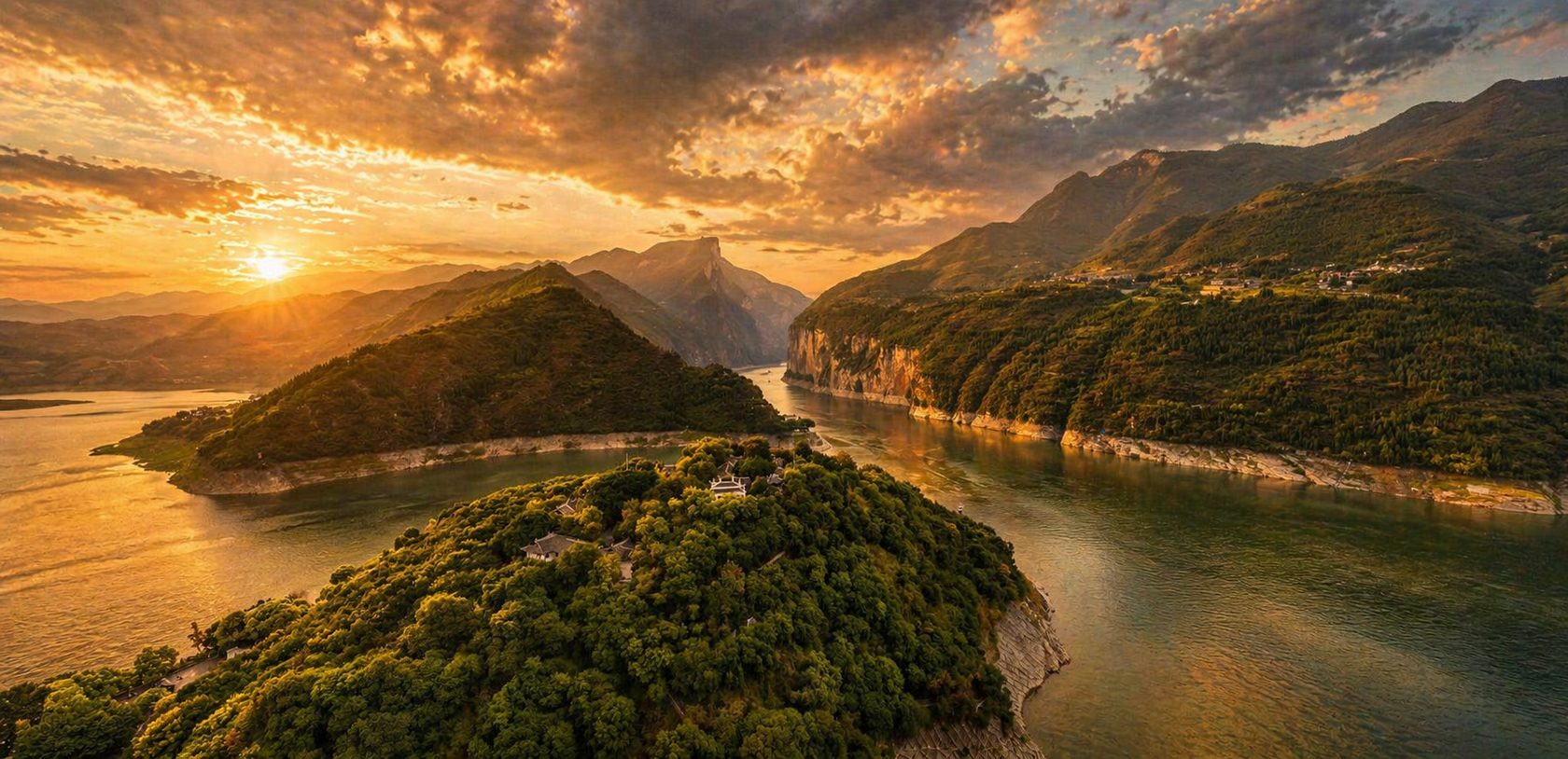 Основные строения замка были построены в XVII веке. Ранее комплекс находился на полуострове, но после строительства плотины «Три ущелья», образовался остров, который был связан с материком мостом через реку Янцзы.