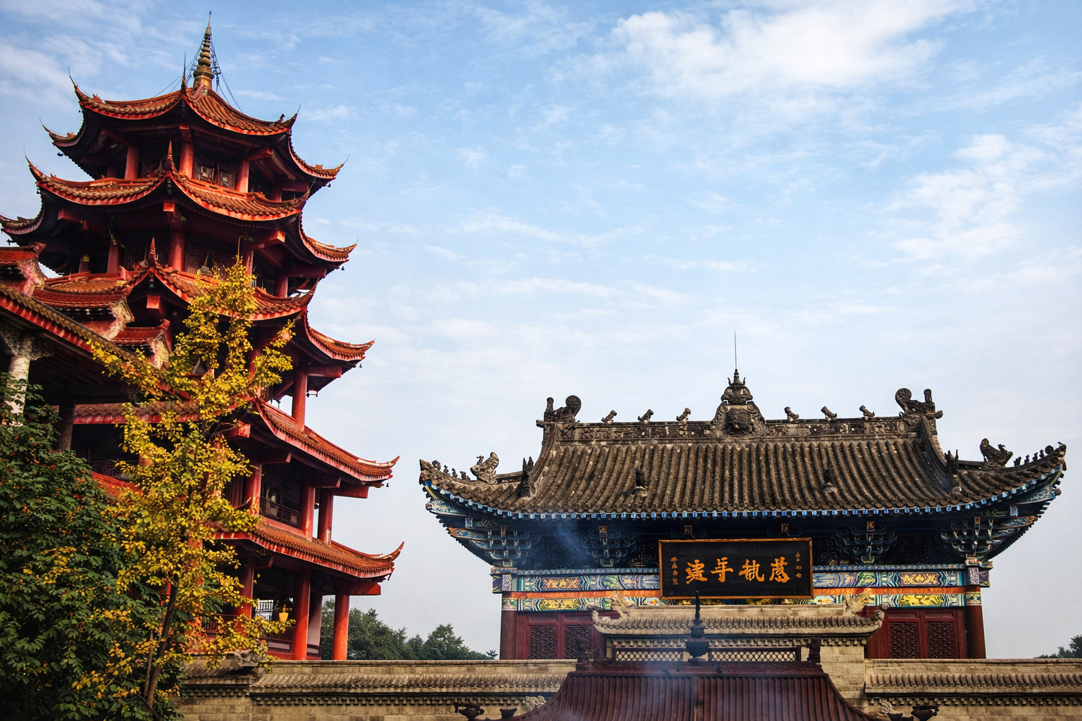 Когда-то здесь укрывался беглый император минской династии — Чжу Юньвэнь после того, как его дядя Чжу Ди захватил трон. За свое время храм подвергался нескольким реставрациям, но все равно сохранил свою уникальную архитектуру. Храм был построен без единого гвоздя.