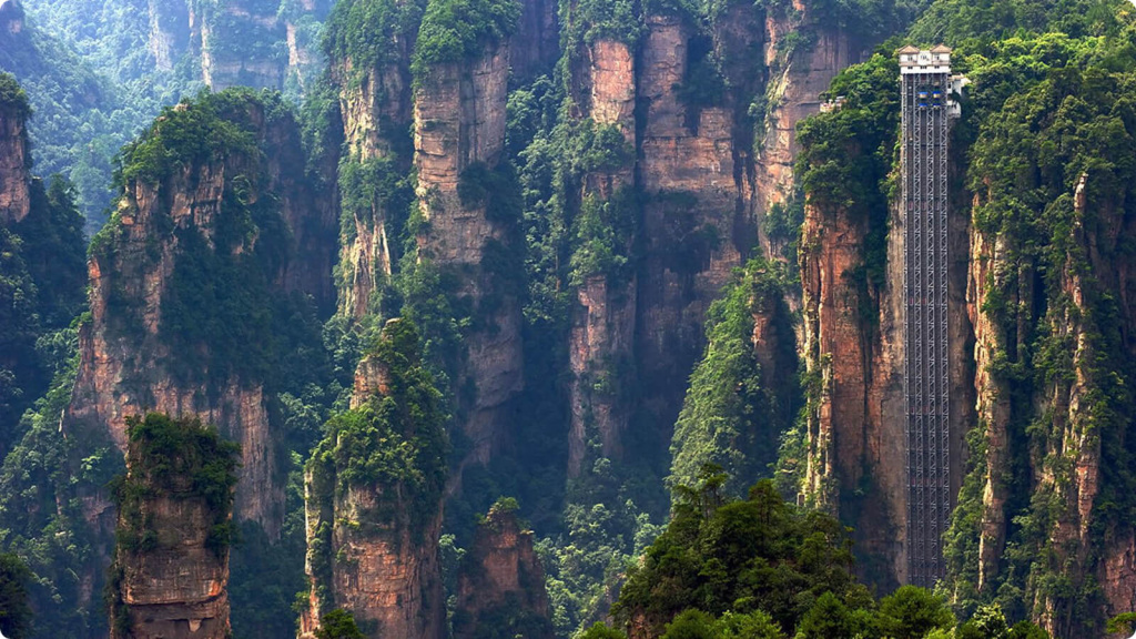 Лифт Байлун (кит. упр. 百龙电梯, буквально: «Лифт Ста Драконов») — это самый высокий внешний лифт в мире. Он поднимает туристов на высоту 326 метров, на смотровую площадку на вершине горы в национальном парке Чжанцзяцзе.