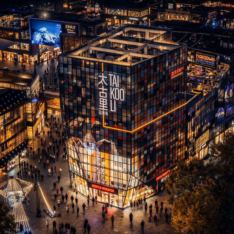 Район Тайкули (Taigu Li, 太古里) — это современный, стильный торговый и культурный центр рядом с улицей Чуньси-лу, известный своей уникальной архитектурой, сочетающей старинные храмы с современными зданиями, модными магазинами, ресторанами и арт-пространствами, и являющийся популярным местом для прогулок и шопинга в сердце древнего города.
