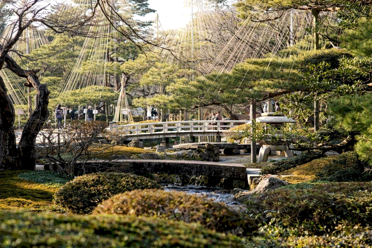 Парк Кэнроку-эн (яп. 兼六園) — самый большой парк Канадзавы, один из Трёх знаменитых парков Японии. Название означает Сад шести достоинств. Изначально это был сад замка Канадзава. Парк был создан в XVII веке и открыт для публики в 1875 году. На территории в 25 акров (114 436,65 м²) расположено множество деревьев (около 8 750), цветов и других растений (всего 183 вида), пруды, водопады, ручьи, мосты. Среди достопримечательностей парка — древний фонтан и чайный домик. Вода подается из удалённой реки по сложной системе водоснабжения, построенной еще в 1632 году. Зимой особый колорит парку Кэнроку-эн придают канаты, протянутые с вершин деревьев, для того чтобы уберечь их от обламывания под тяжестью снега.